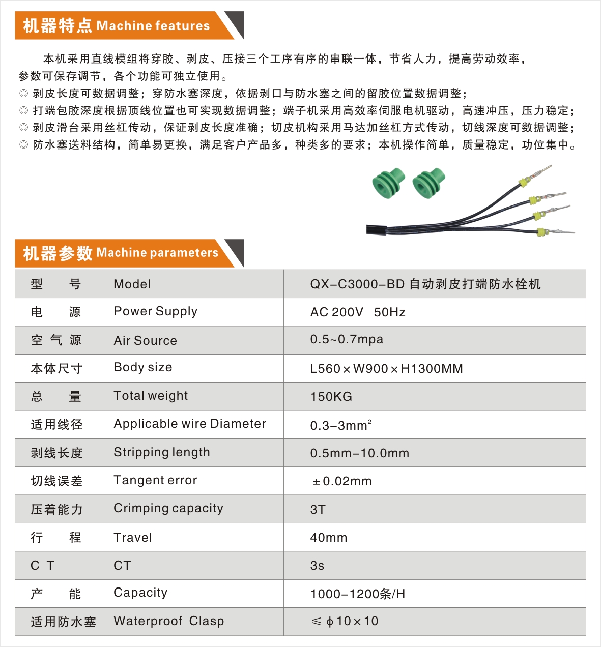 QX-C3000-BD 自動(dòng)剝皮打端防水栓機(jī)