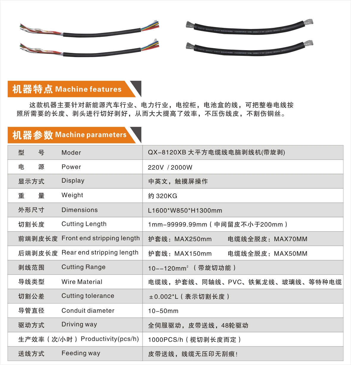 QX-8120XB大平方電纜線電腦剝線機
