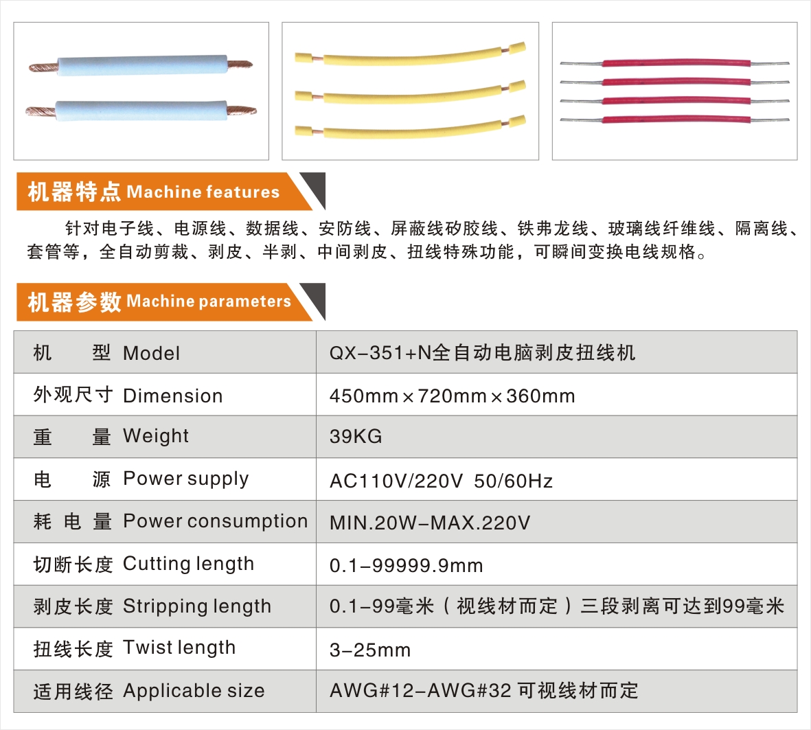 QX-351+N 全自動電腦剝皮扭線機
