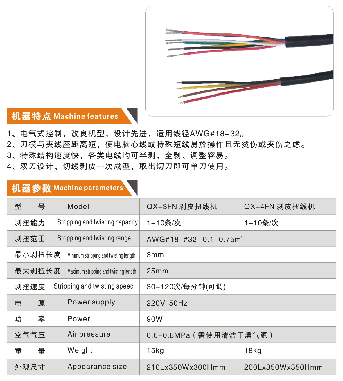 QX-3FN、4FN多芯線剝皮扭線機